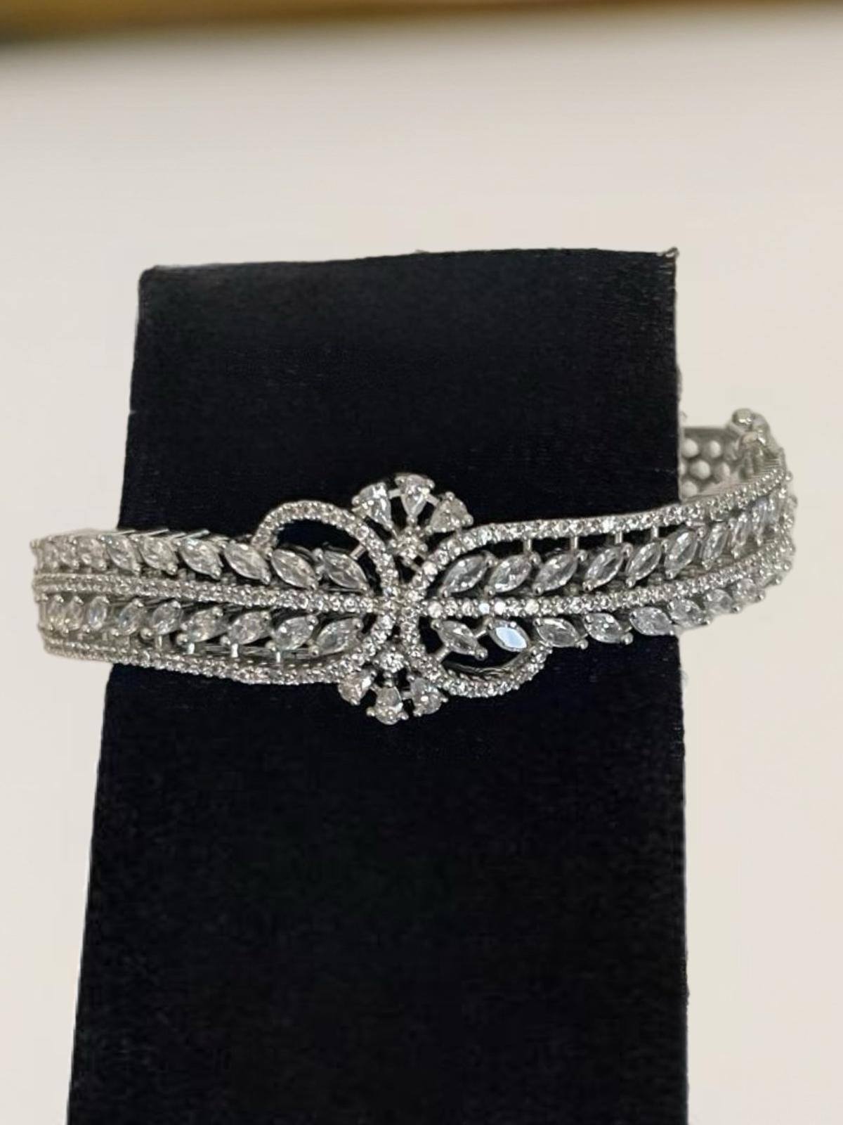 This elegant Silver American Diamond Openable Bracelet sparkles with precision-cut stones set in a sleek silver finish.