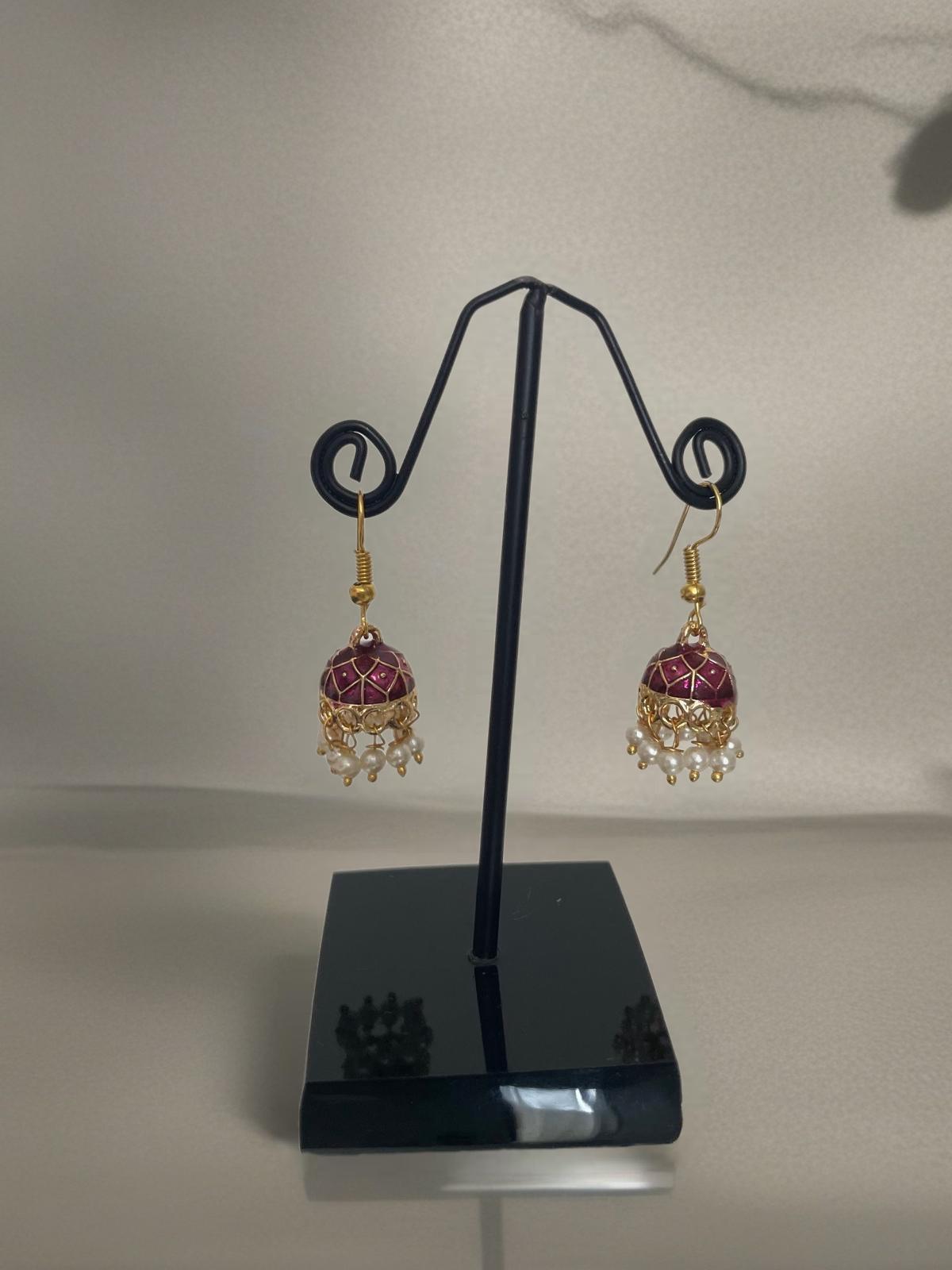 Elevate your everyday style with this Mini Maroon Jhumka featuring a delicate hanging pearl. Its compact size makes it lightweight and comfortable for daily wear, while the combination of maroon tones with a soft pearl drop adds a refined charm.